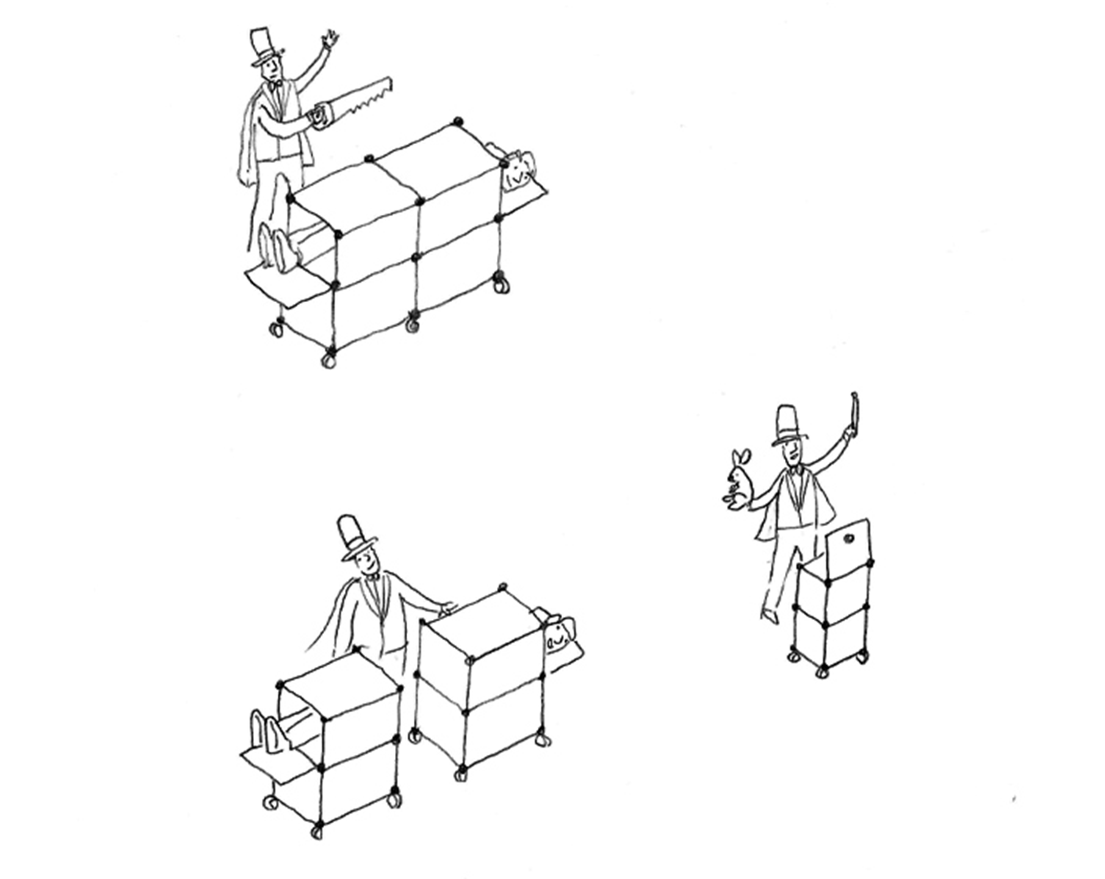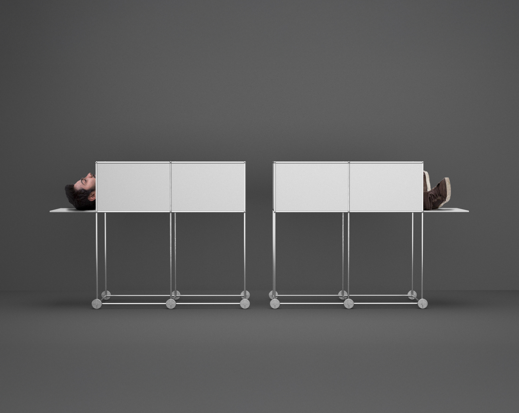 The simplicity of the bars and joints allows for a new take on a parenting classic. USM for the kids. USM for dreams. Take it up one notch, and build an entire crib out of the system. Start ‘em early.