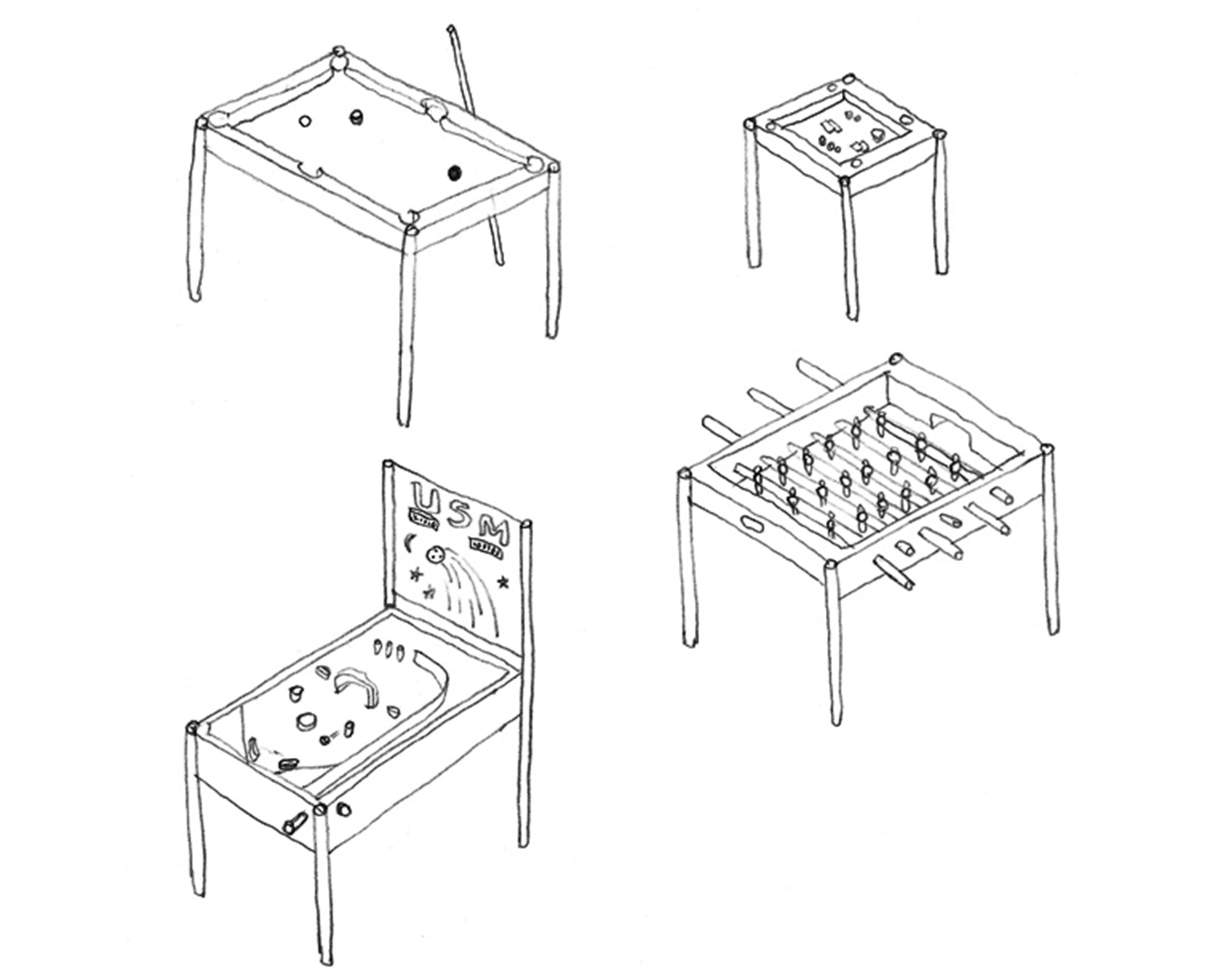 PlayLab was founded 21 years ago in architecture school at Virginia Tech. It was there that we first fell in love with the brand, design, system and ideals of USM. We’re taking the well-established modular joints and panels all so familiar to the world, and expanding its language by applying them to new narratives. Our hope is to build something, if not many things, together—by expanding possibilities.