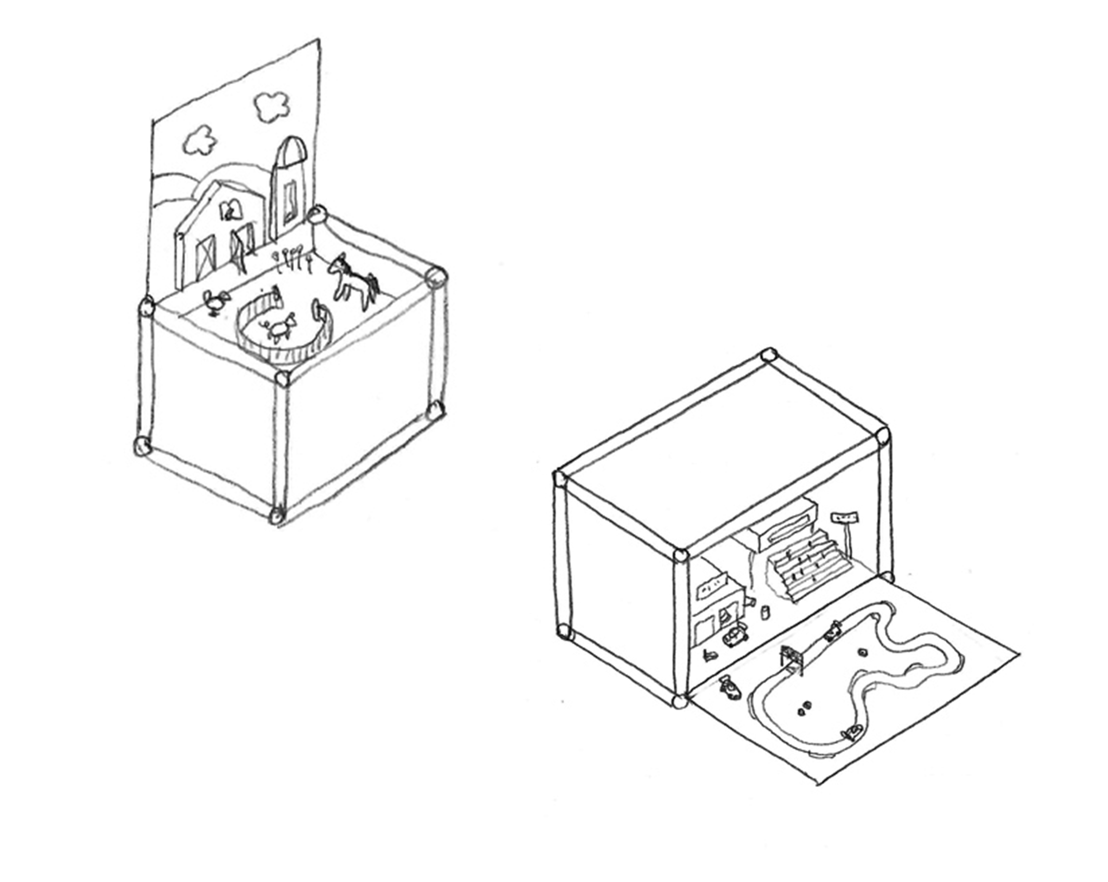 Taking Music Box one step further, build out a box for the kids—or for the youthful adults. A doll house, a racecar track set—anything goes at USM.