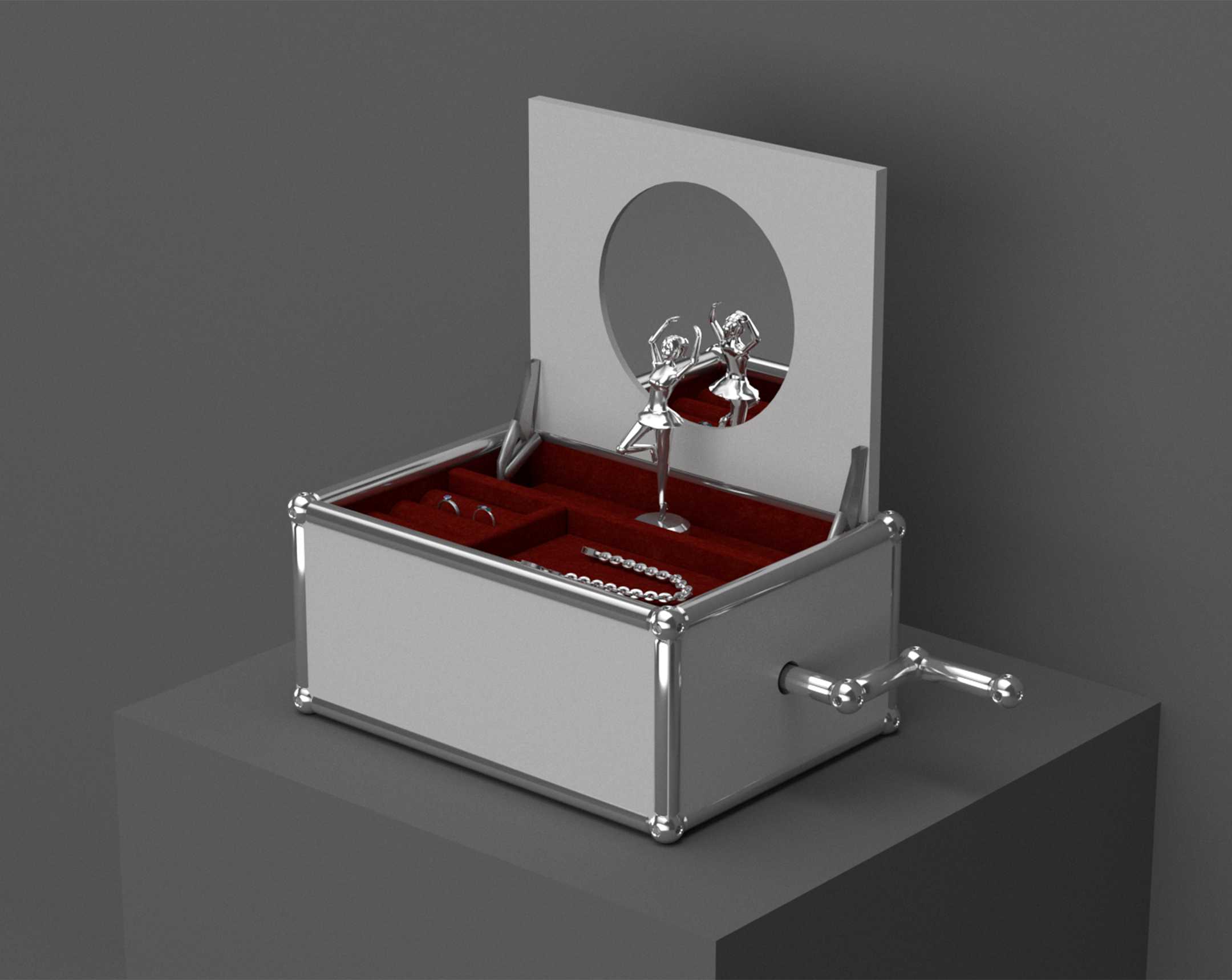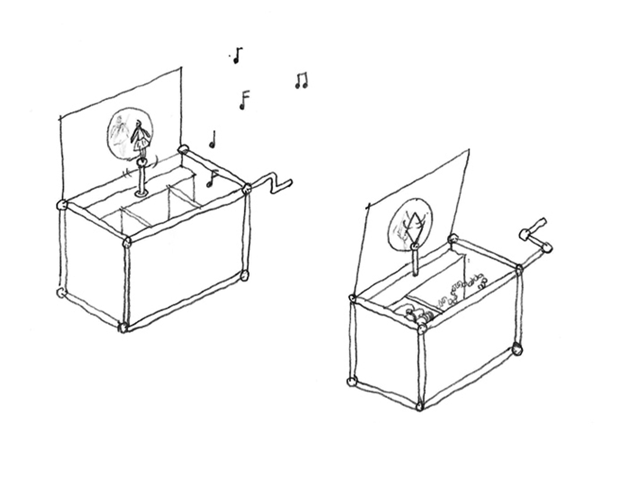 A surprise and hidden gem—take a regular system, and delight an audience with something unexpected inside. In this case: a music box.