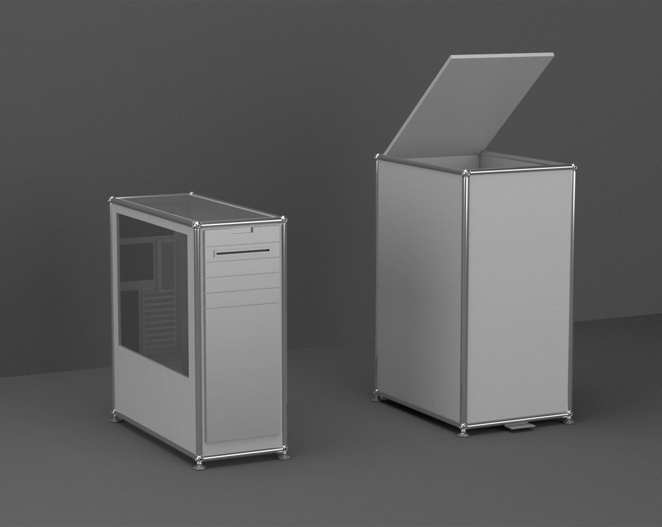 On the notion of everyday objects, we explore what else the system can “encase”—from CPU towers and key boards, to trash cans. You’ve already established a dominance within office culture, let’s take over the rest of the office, too.